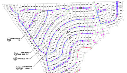 To actually layout your network, figuring out routes, you can either do it manually or use an automatic software routing package. Manual routing isn't as hard as it seems for a small network. Based on your local knowledge of if and where you place cabinets, vaults or pedestals, you can use Google Earth to create a passable layout map for networks up to 1,000 or so homes. Anything much bigger than that, and I"d be tempted to pay the money and use a software program.