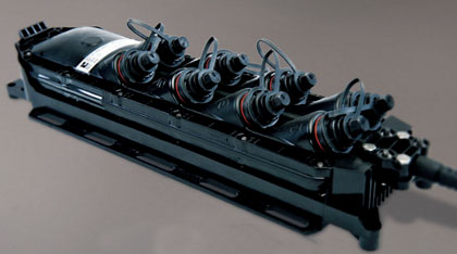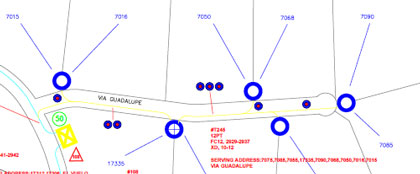 You might use such an 8 port or 12 port terminal in a design like this one where a terminal is in an underground vault and serves several distributed houses (the circle with the X is where such a terminal would go to serve the other locations via buried flower pots):